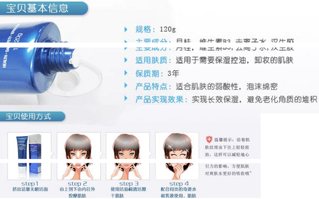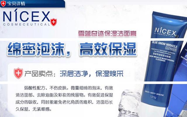 雪蓝奇迹保湿洁面膏 功效: 蕴含弱酸性配方,滋润肌肤。丰富细腻的泡沫,深度清洁面部肌肤,去除多余油脂及妆容污垢。促进保湿成分的吸收,同时能避免老化角质的堆积。洗后皮肤无紧绷感,使肌肤清新舒爽。