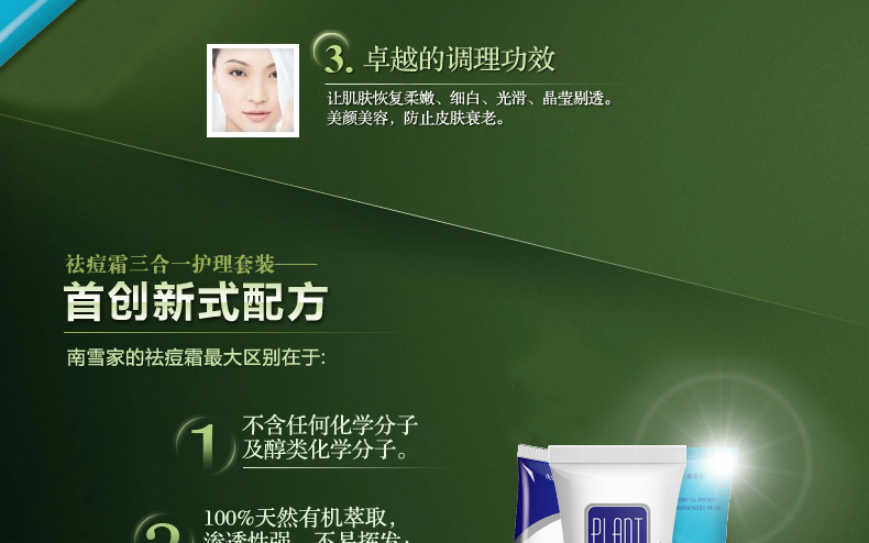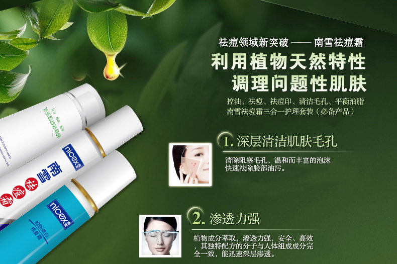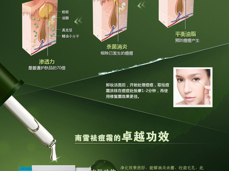 南雪祛痘霜——抑制粉刺、祛痘、渗透力强,祛痘的同时舒缓肌肤;