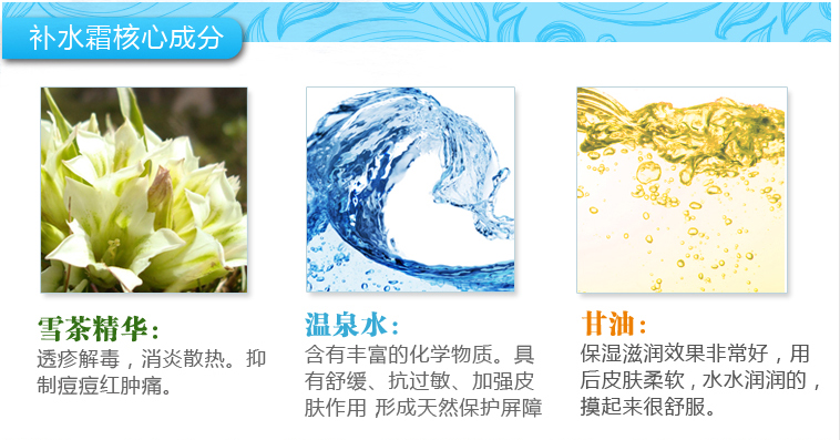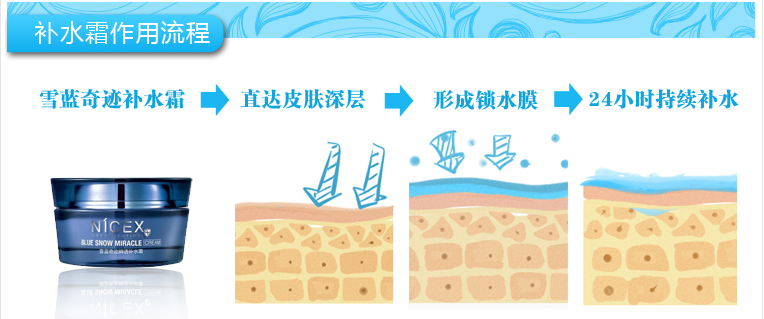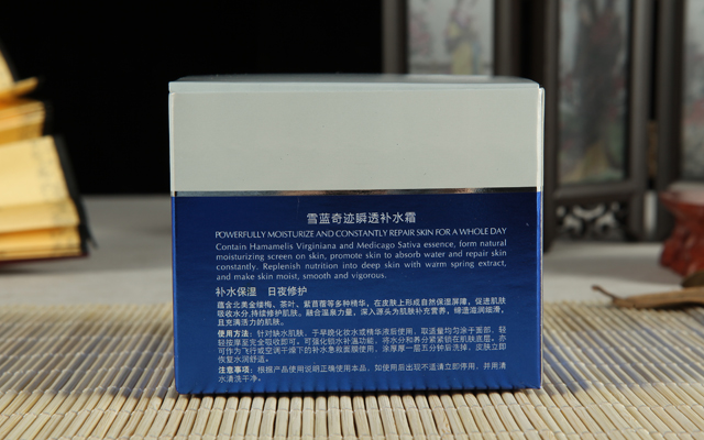 雪蓝奇迹瞬透补水霜 乳液/面霜品类: 面霜 功效: 蕴含多种草本精华,在皮肤上形成自然保湿屏障,促进肌肤吸收水分,深入源头为肌肤补充营养,持续修护肌肤,缔造滋润细滑,且充满活力的肌肤。