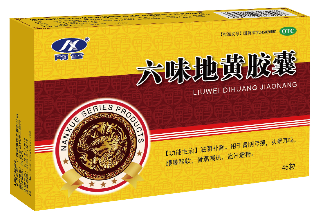 【成 份】熟地黄、牡丹皮、山药、酒萸肉、泽泻、茯苓。辅料为淀粉,硬脂酸镁。 【性 状】本品为硬胶囊,内容物为浅棕色至棕色的粉末和颗粒;味甜、微酸。